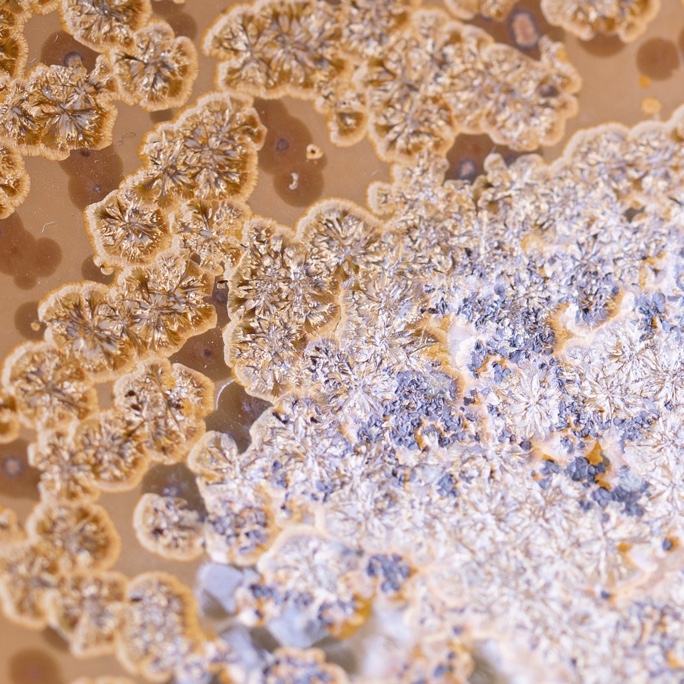まるで初雪の結晶のような、ひそやかに咲く幻の花のような———見るひとをハッとさせる結晶を作り出す亜鉛結晶釉も、KOUが愛おしむ釉薬のひとつ。