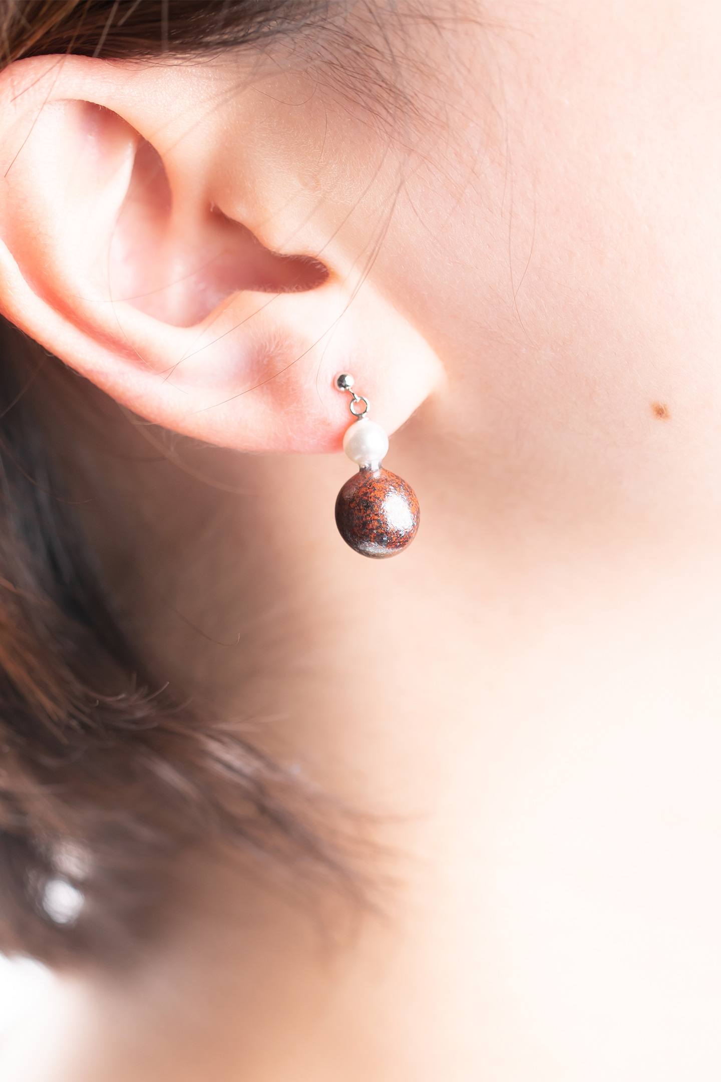 朱金地で仕上げたシリーズは、小さくても味わい深く、いつまでもみつめていたい魅力があります。パールやビーズ、水引などの異素材の組み合わせが、身につけた人の個性やこだわりを際立たせてくれるはず。