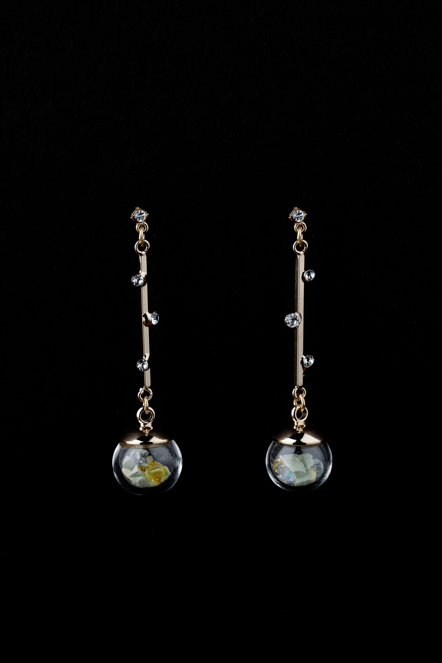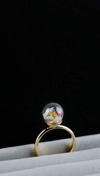 ガラスの中に陶器や鉱石のかけら-異質な出会いが産み出す魅力を閉じこめたシリーズ。小さな丸いガラスの中にある神秘的な世界を見つめてください。